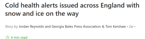 Meanwhile, over the New Year period the UK Health Security Agency issued an amber cold health alert as temperatures plummeted, warning of serious risks to vulnerable populations.